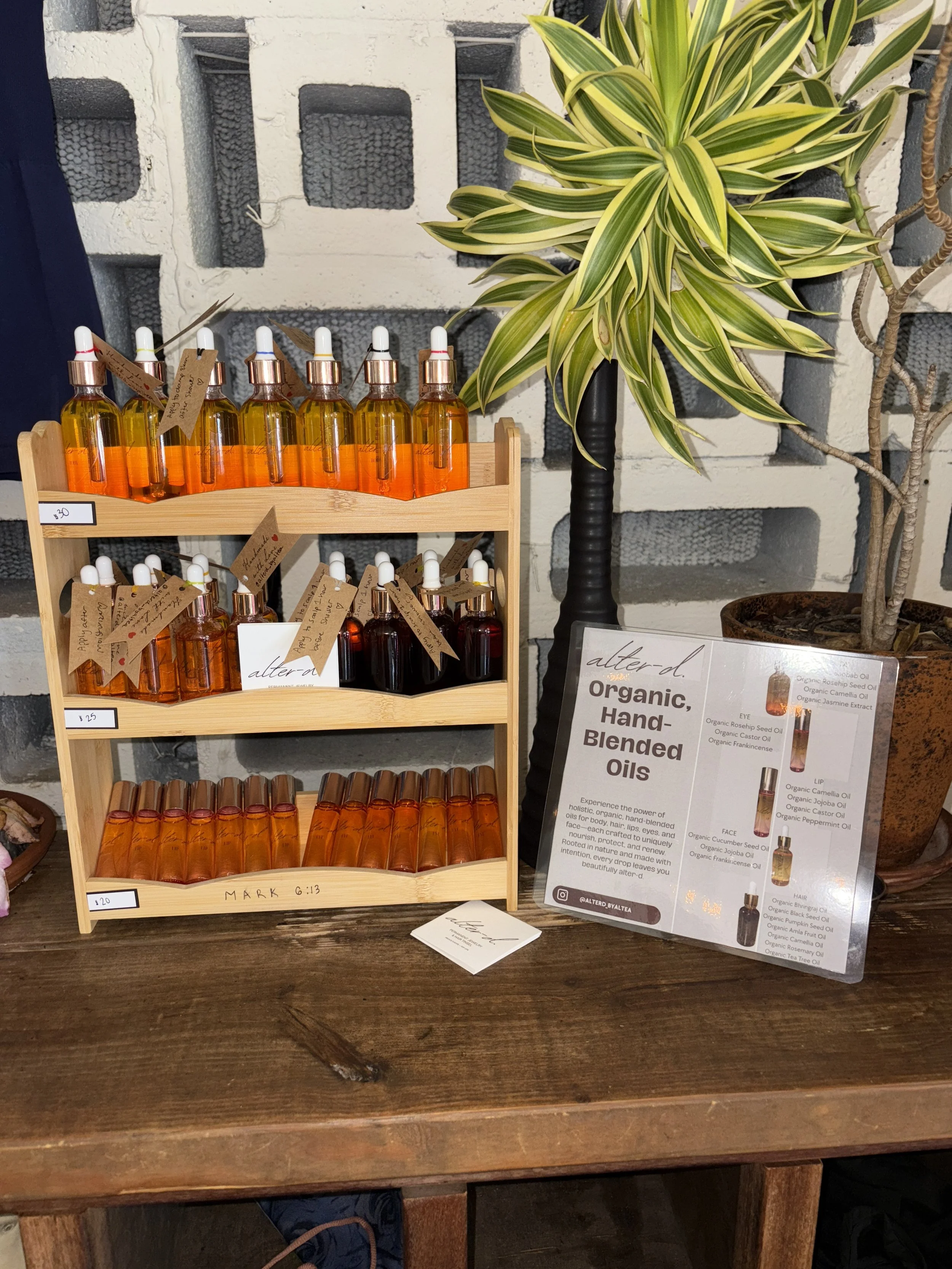Experience the glow from holistic, organic, hand-blended oils for body, hair, lips, eyes, and face—each crafted to uniquely nourish, protect, and renew. Rooted in nature and made with intention, every drop leaves you beautifully alter-d.